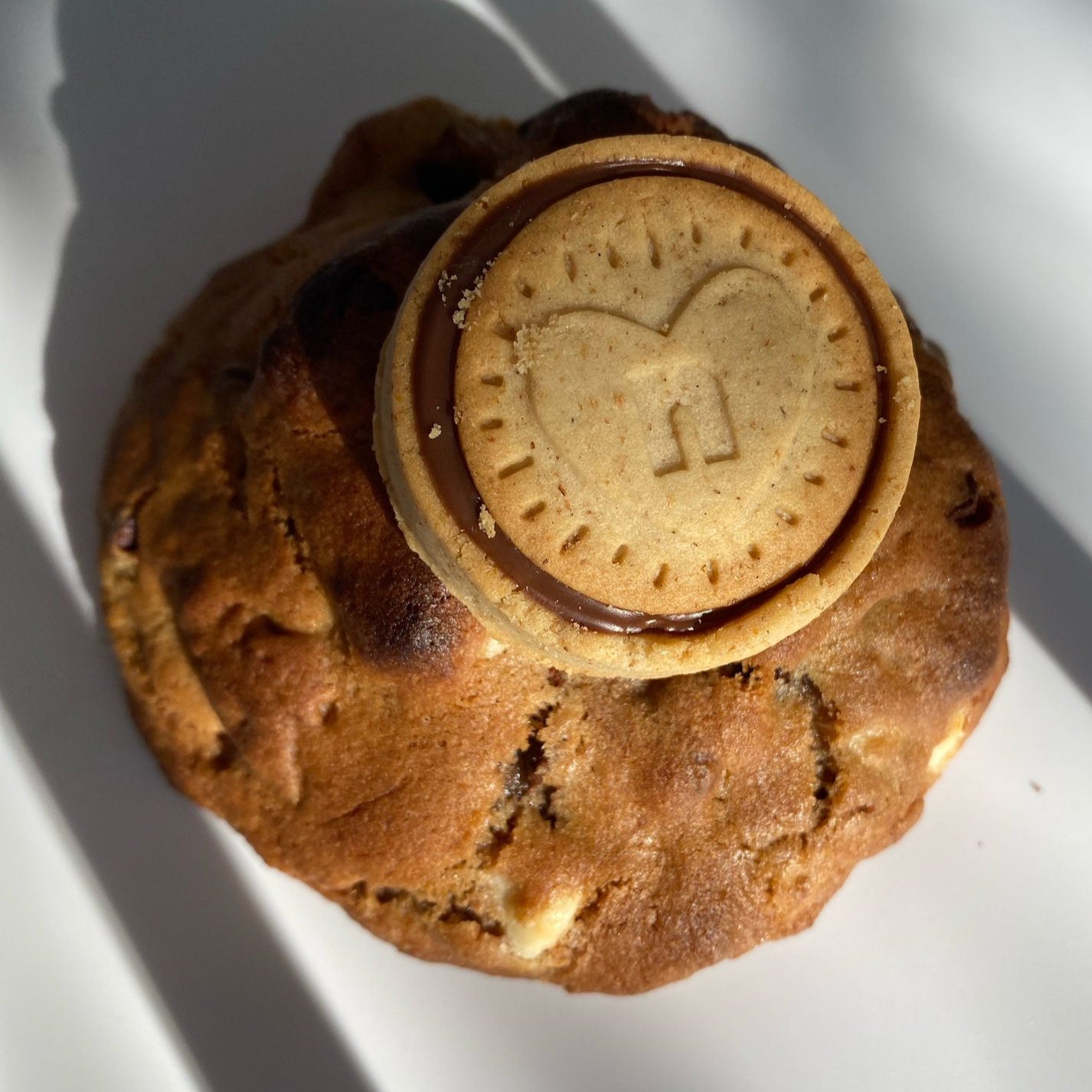 Delicious vanilla cookie loaded with an irresistible combination of chocolates: semisweet, milk, and white. Topped with generous portions of creamy Nutella and biscuit pieces that add a crunchy texture. A taste experience you won't be able to resist and will want to repeat.