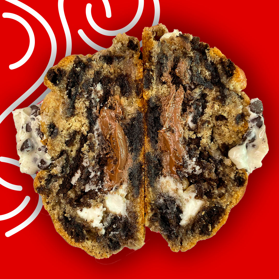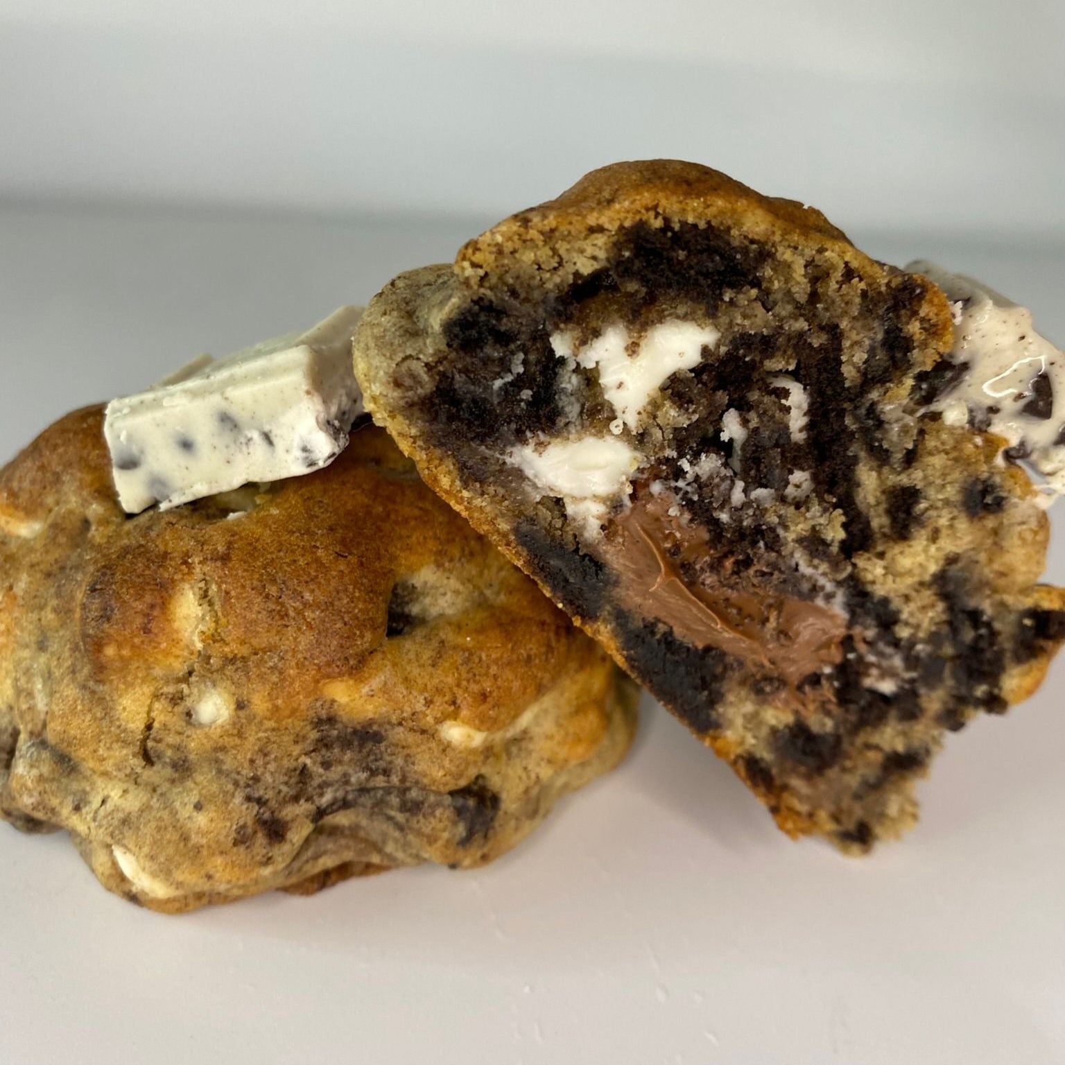 Enjoy the irresistible combination of our Cookies and Cream cookie, a delicious blend of smooth vanilla, creamy white chocolate chunks, crunchy Oreo cookies, and a touch of Nutella that will make every bite a unique and addictive experience. Perfect for satisfying your cravings and sharing unforgettable sweet moments.